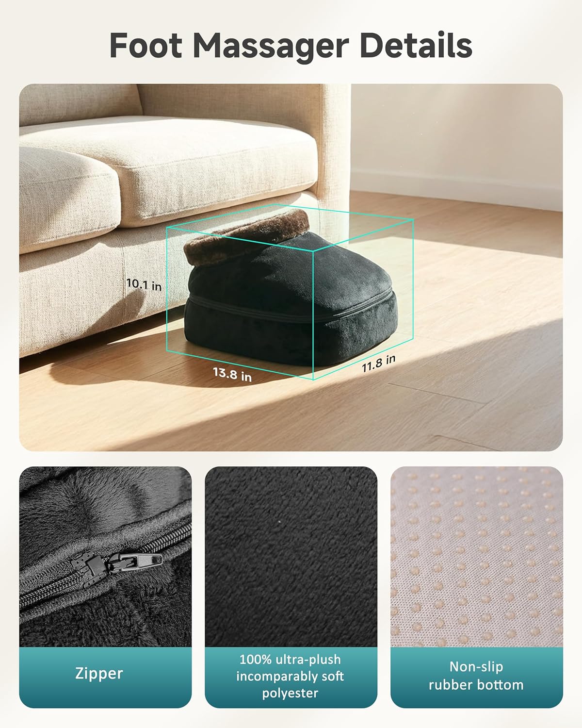 • Note: This foot massager features a soothing heat function. After 10 minutes of heating, you will feel noticeable warmth. The heat function takes 15 minutes to reach 135°F after being turned on. If you are looking for a fast-heating product, please consider carefully before purchasing