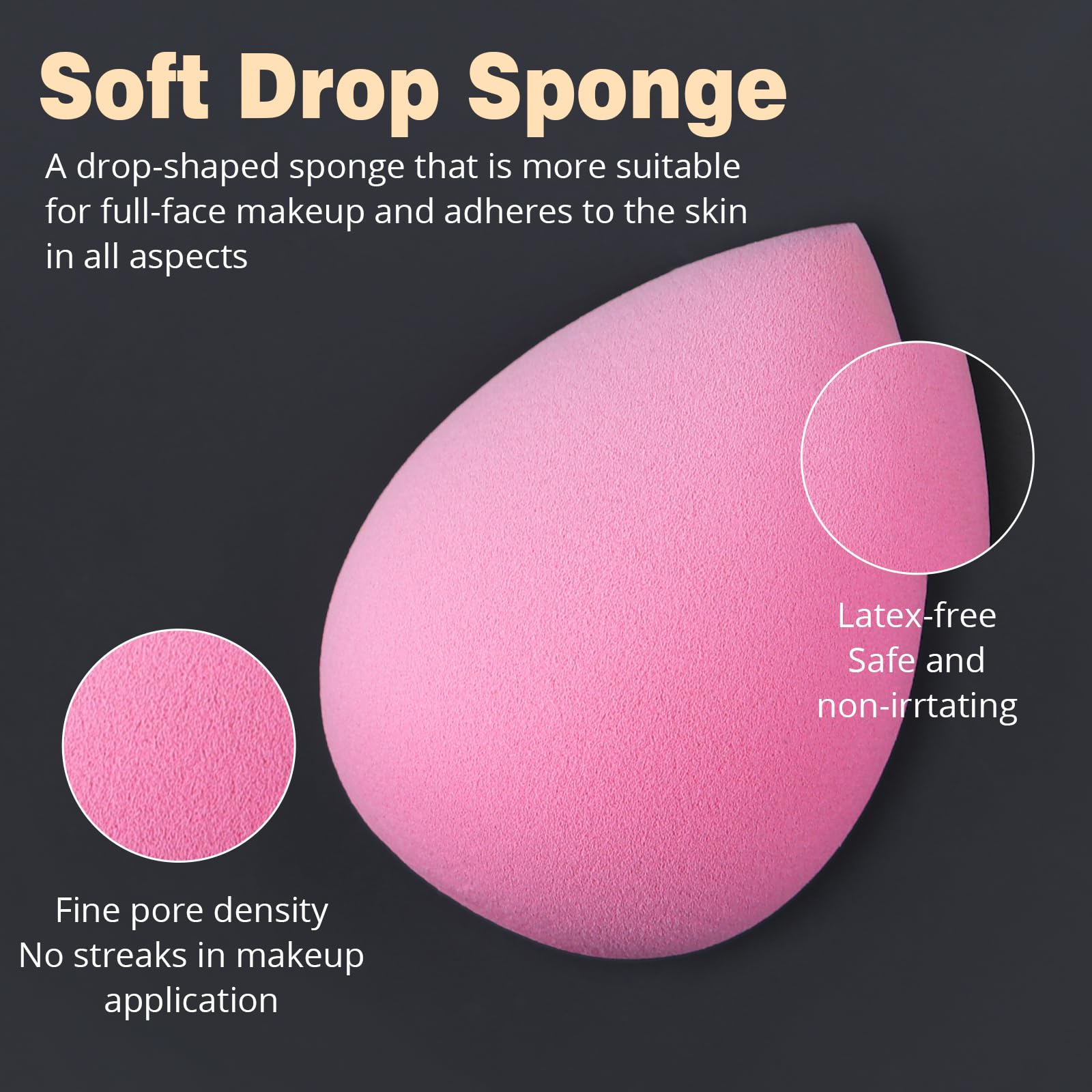 • Makeup brush set with two makeup sponges, non-latex beauty sponge with teardrop shape. Use the flat bottom for forehead & cheeks, pointed end is for targeting small areas